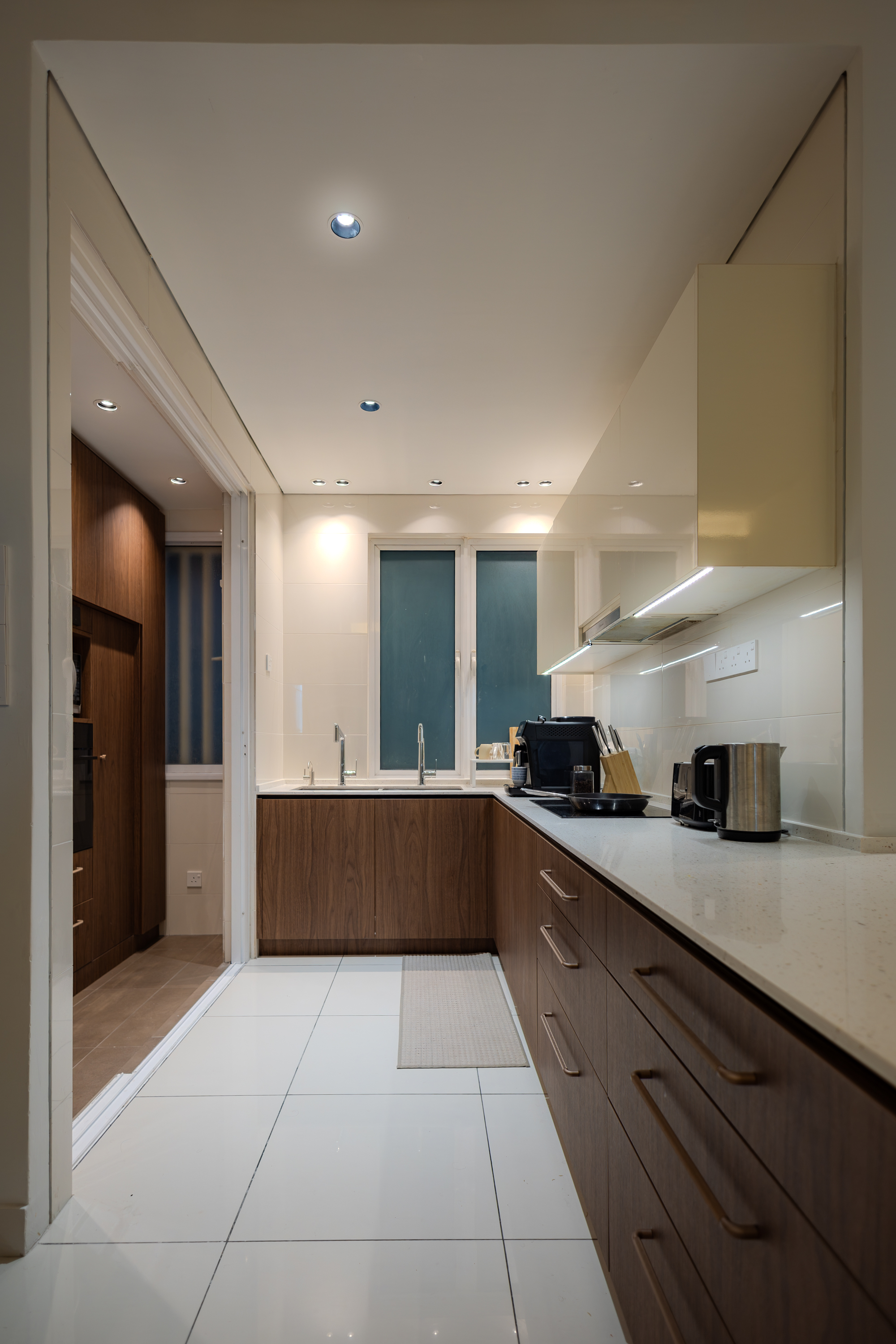 Working with a tight budget we transformed a standard ‘straight from the developer’ kitchen layout to work with the needs of its new user. The top priority being the requirement for more usable countertop space and a personalised function design.